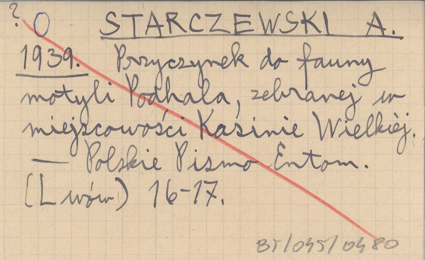 STARCZEWSKI A. 1939 Przyczynek do fauny motyli Podhala, zebranej w miejscowości Kasinie Wielkiej.