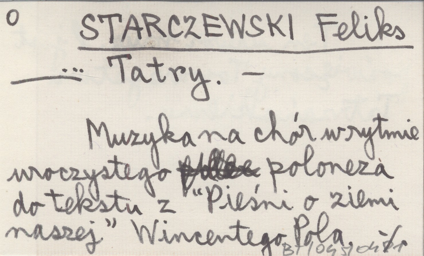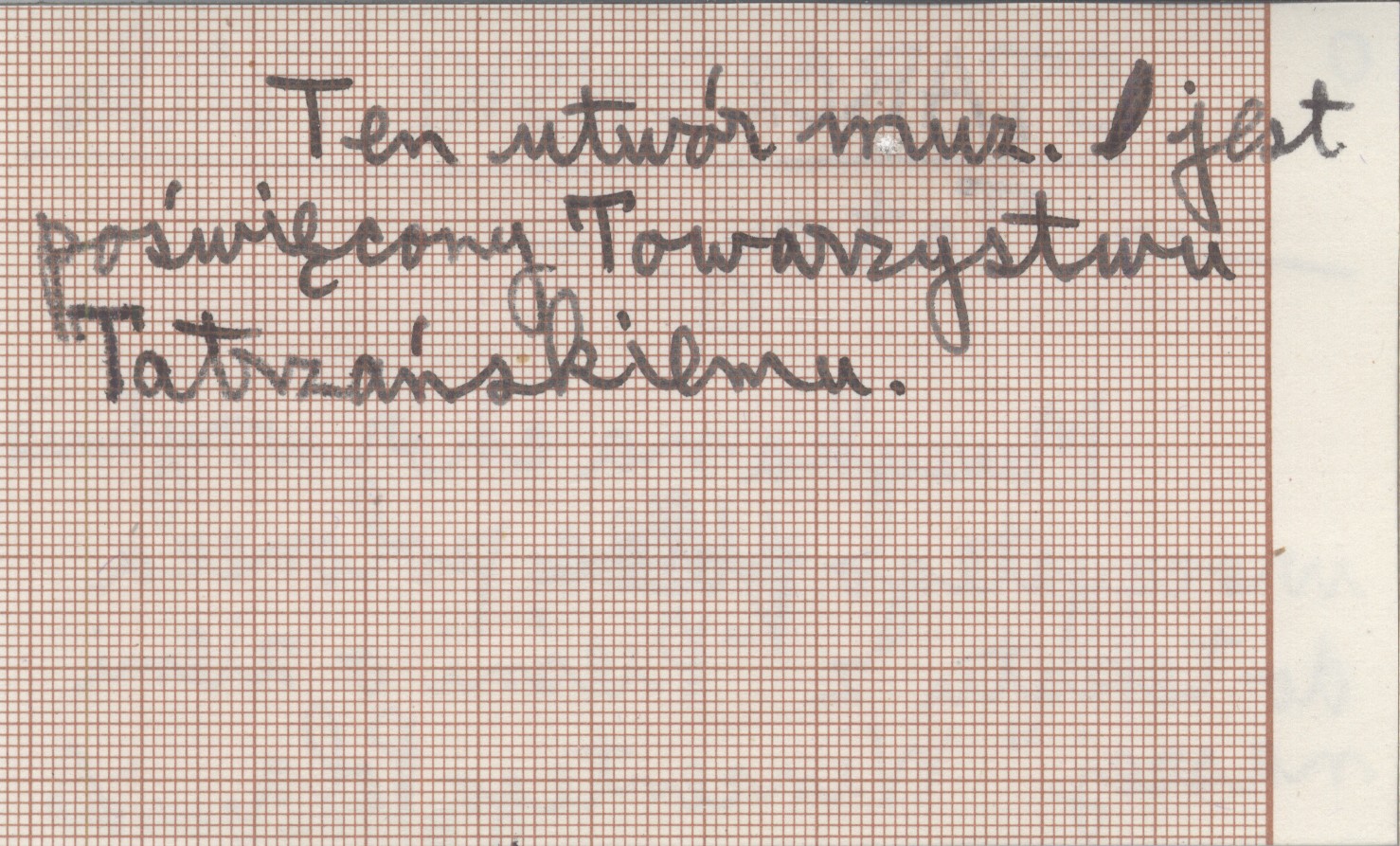 , Muzyka na chór w rytmie uroczystego poloneza do tekstu z "Pieśni o ziemi naszej" Wincentego Pola. Ten utwór muzyczny jest poświęcony Towarzystwu Tatrzańskiemu.