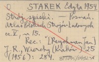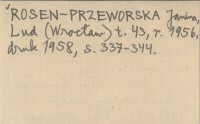 Poznań (Atlas Polskich Strojów Ludowych, cz. V, z. 15) , 76 s., il., 3 k., Rez., Sum., err., okł. (il.), 31x22 cm. REC: [REYCHMAN Jan] J. R., Wierchy (Kraków) 25 (1956): 284 ; ROSEN-PRZEWORSKA Janina, Lud (Wrocław) t. 43 (1956, druk 1958): 337-344 ;