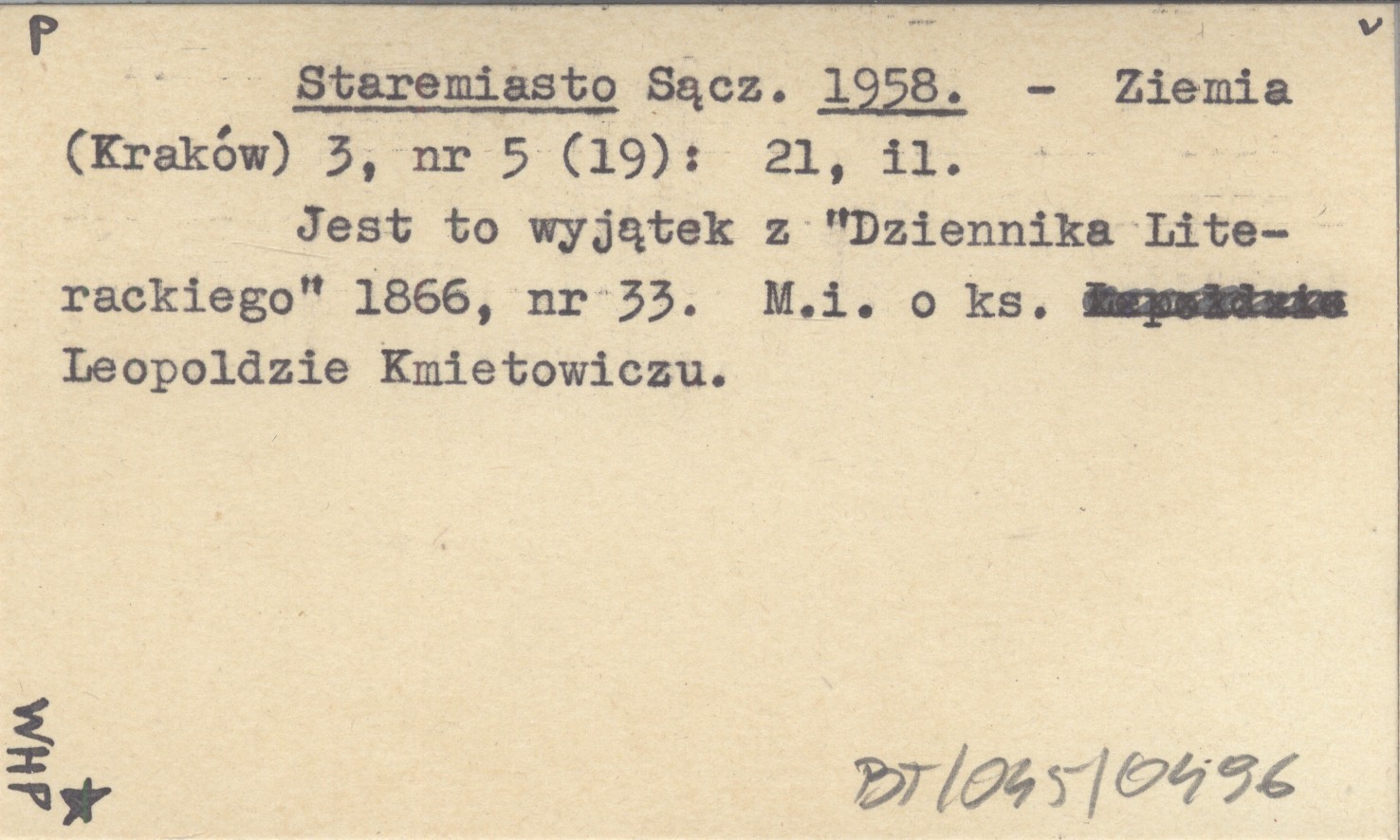 Ziemia (Kraków) , 3, nr 5 (19): 21, il. Jest to wyjątek z "Dziennika Literackiego" 1866, nr 33. M. in. o ks. Leopoldzie Kmietowiczu.
