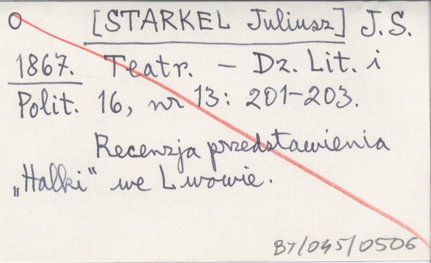 Dziennik Literacki i Polityczny, 16, nr 13: 201-203. Recenzja przedstawienia "Halki" we Lwowie.