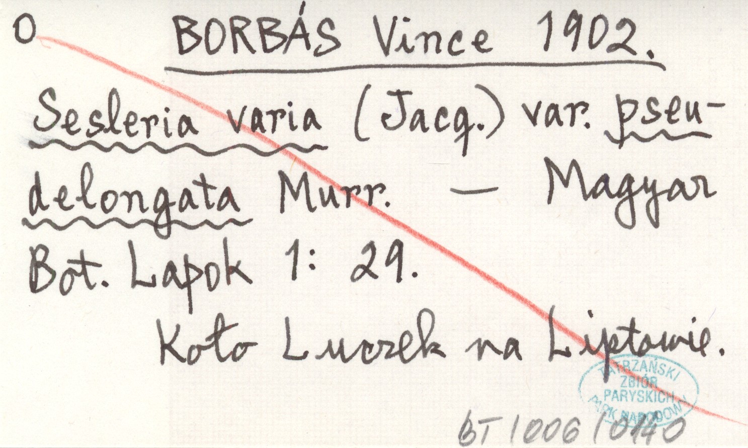 BORBÁS Vince 1902 Sesleria varia (Jacq.) var. pseudelongata Murr.