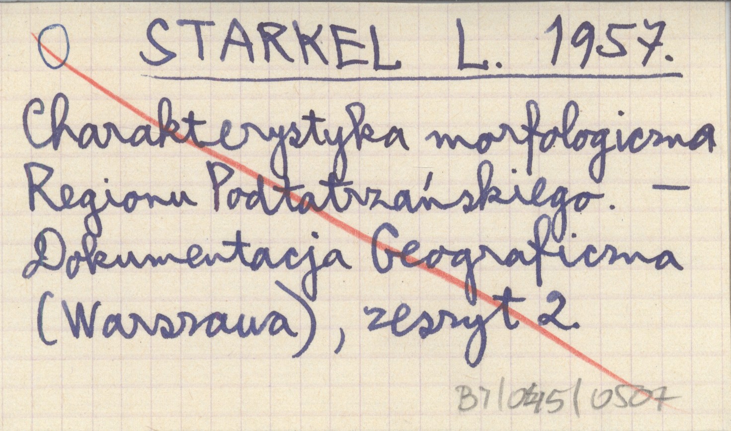 STARKEL L. 1957 Charakterystyka morfologiczna Regionu Podtatrzańskiego.