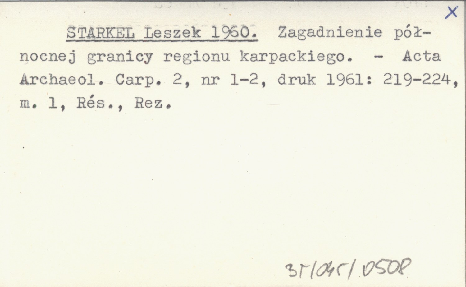 Acta Archeologica Carpathica, 2, nr 1-2, druk 1961: 219-224, 1 mapa, Rés., Rez.