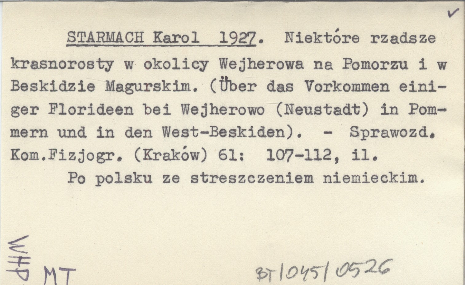 STARMACH Karol 1927 Niektóre rzadsze krasnorosty w okolicy Wejherowa na Pomorzu i w Beskidzie Magurskim. (Über das Vorkommen einiger Florideen bei Wejherowo (Neustadt) in Pommern und in den West-Beskiden).