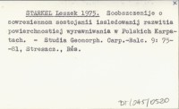STARKEL Leszek 1975 Soobszczenije o sowremiennom sostojanii issledowanij razwitia powierchnostiej wyrawniwania w Polskich Karpatach.