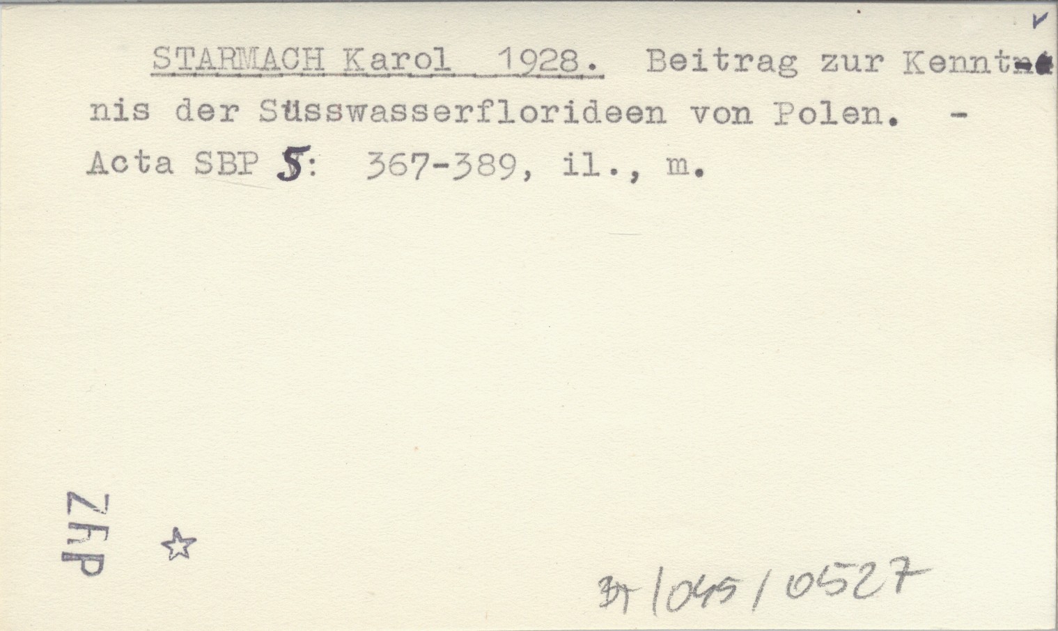 STARMACH Karol 1928 Beitrag zur Kenntnis der Süsswasserflorideen von Polen.
