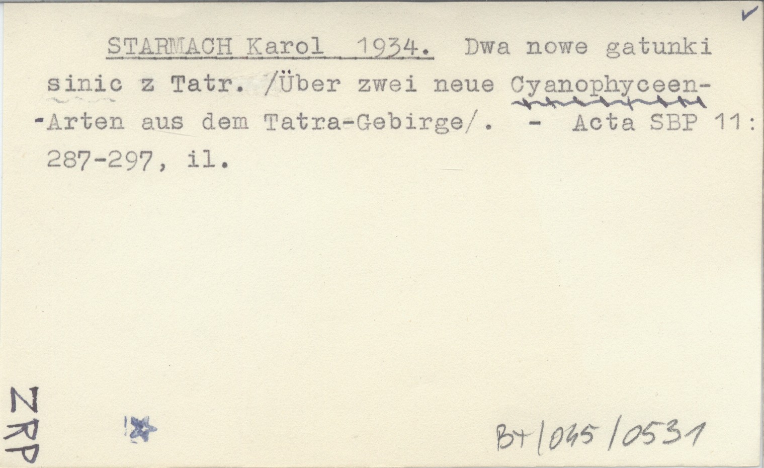 STARMACH Karol 1934 Dwa nowe gatunki sinic z Tatr. (Über zwei neue Cyanophyceen-Arten aus dem Tatra-Gebirge).
