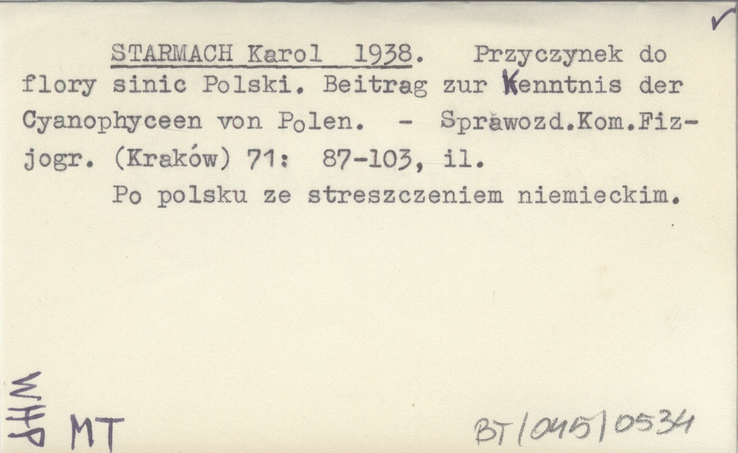 STARMACH Karol 1938 Przyczynek do flory sinic Polski. Beitrag zur Kenntnis der Cyanophyceen von Polen.