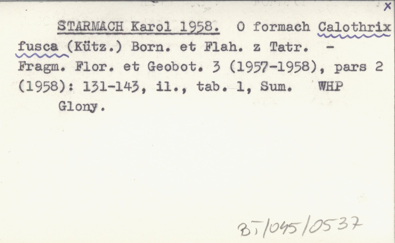 STARMACH Karol 1958 O formach Calothrix fusca (Kütz.) Born. et Flah. z Tatr.