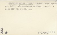 STARMACH Karol 1936 Zapiski algologiczne. I-II. (Algologische Notizen. I-II).