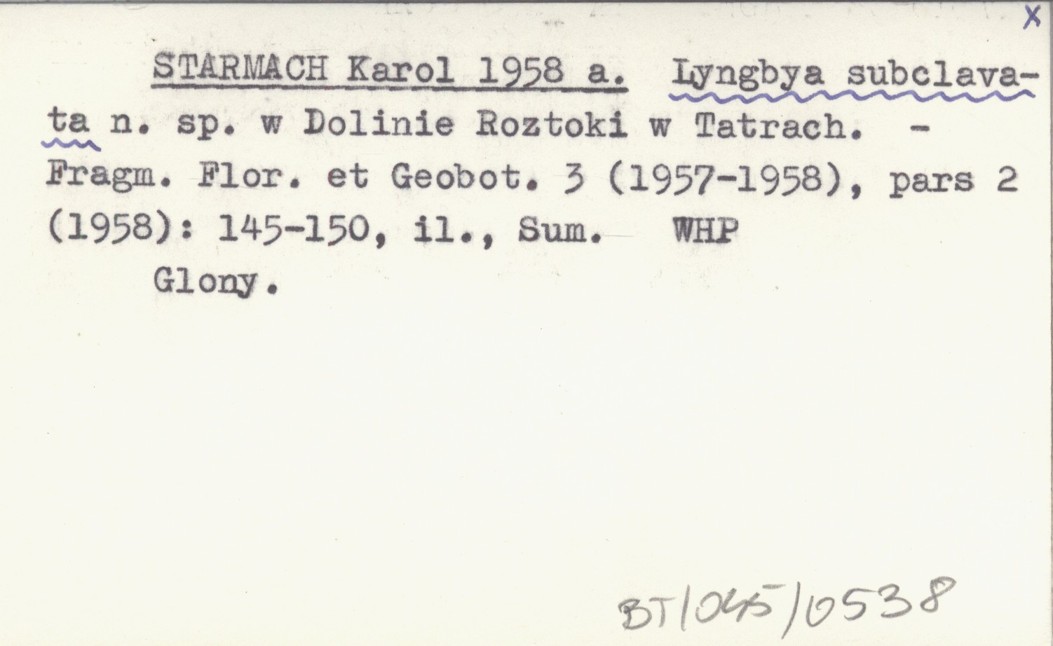 Lyngbya subclavata n.sp. w Dolinie Roztoki w Tatrach.