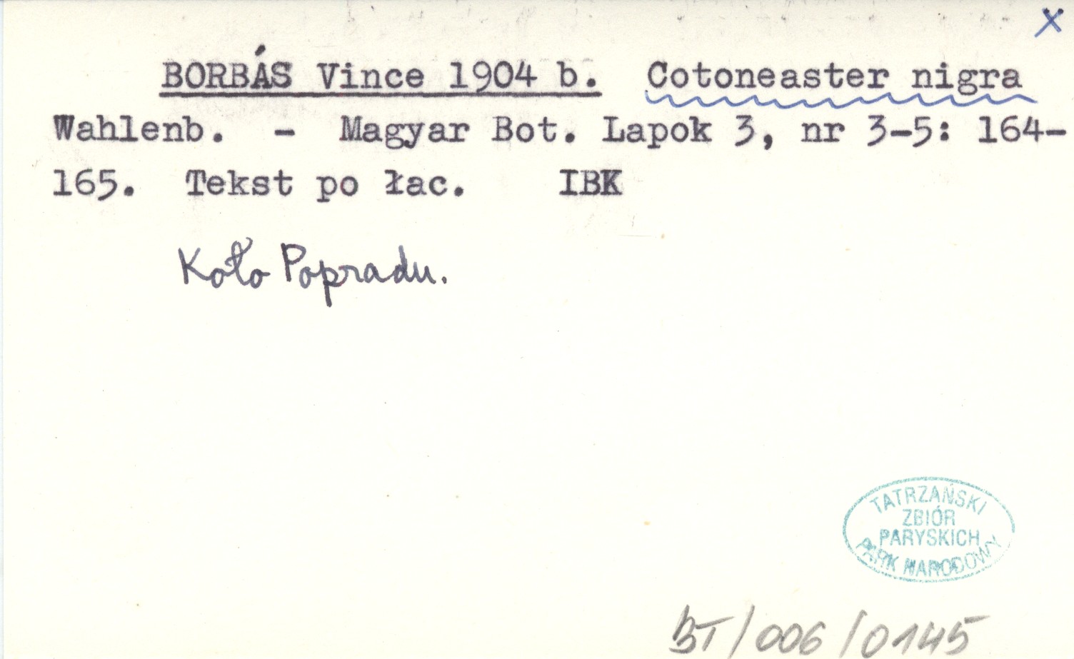 Magyar Botanikai Lapok, 3, nr 3-5: 164-165. Tekst po łac. Koło Popradu.