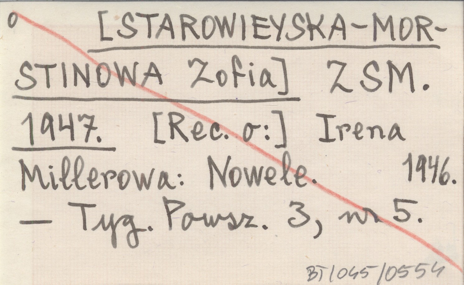 ZSM. [STAROWIEYSKA-MORSTINOWA Zofia] 1947 [Rec. o:] Irena Millerowa: Nowele. 1946.
