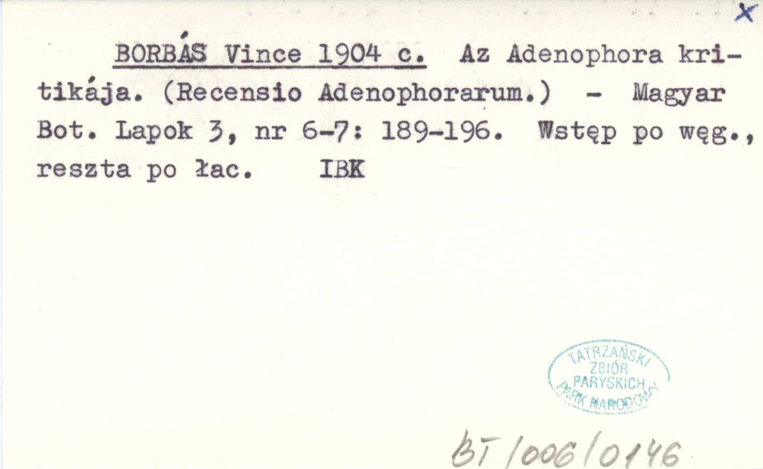 BORBÁS Vince 1904 c Az Adenophora kritikája. (Recensio Adenophorarum.)