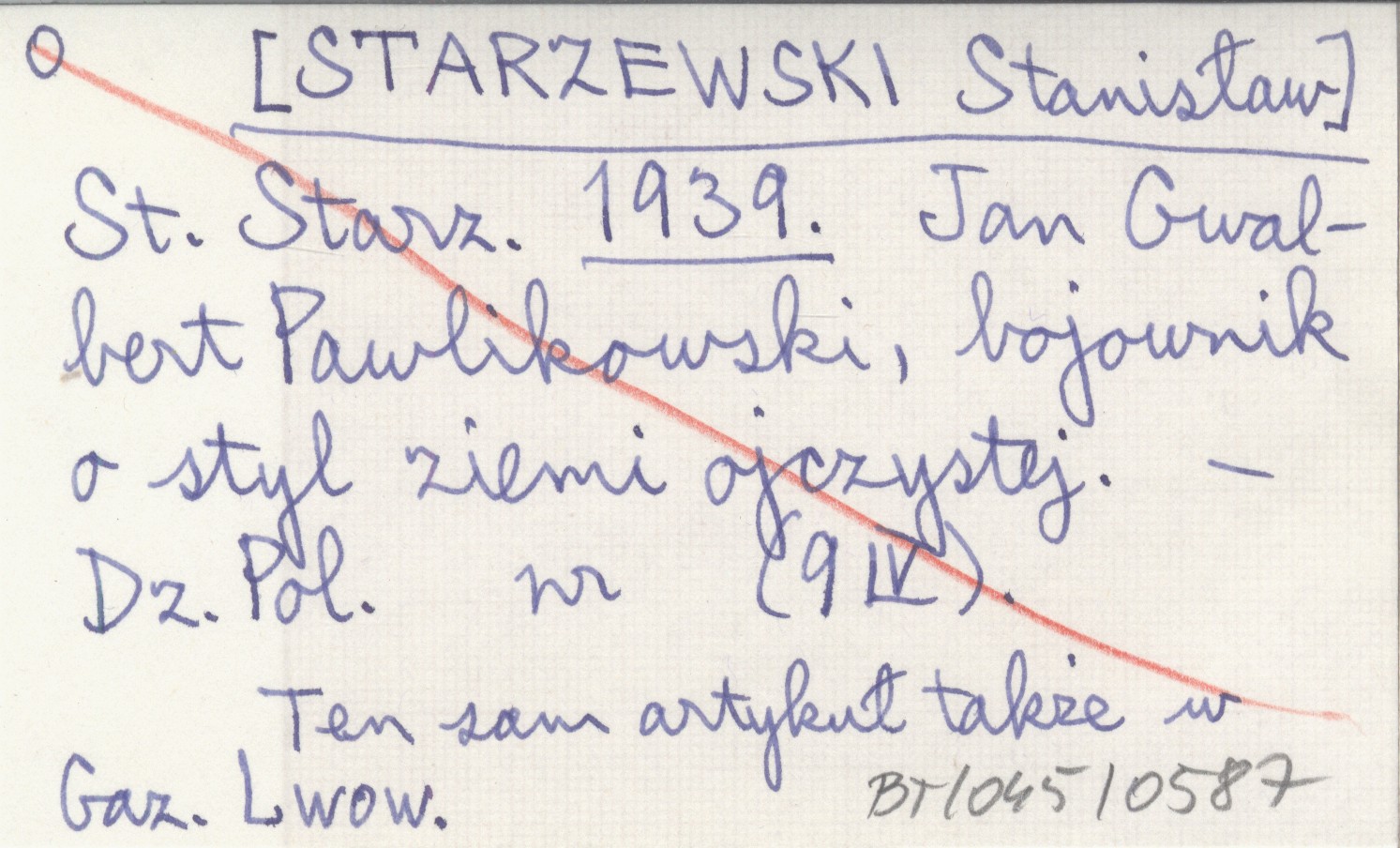 St. Starz. [STARZEWSKI Stanisław] 1939 Jan Gwalbert Pawlikowski, bojownik o styl ziemi ojczystej.
