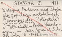 STARZYK J. 1971 Wstępne badania nad ekologią populacji antofilnych Cerambycidae (Coleoptera) w Tatrzańskim Parku Narodowym.