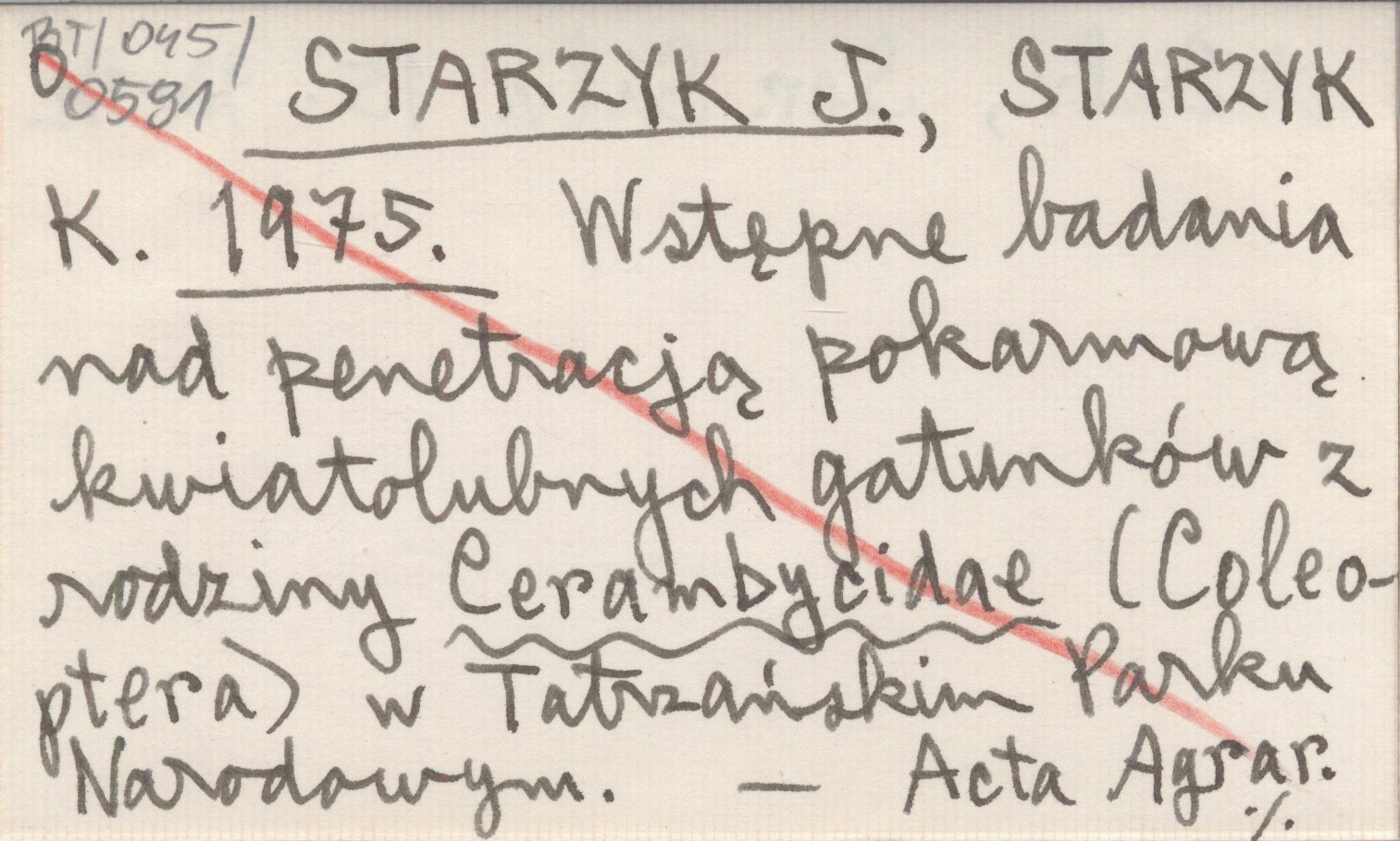 STARZYK J. STARZYK, K. ; 1975 Wstępne badania nad penetracją pokarmową kwiatolubnych gatunków z rodziny Cerambycidae (Coleoptera) w Tatrzańskim Parku Narodowym.