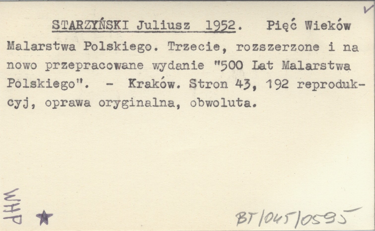STARZYŃSKI Juliusz 1952 Pięć Wieków Malarstwa Polskiego. Trzecie, rozszerzone i na nowo przepracowane wydanie "500 Lat Malarstwa Polskiego".