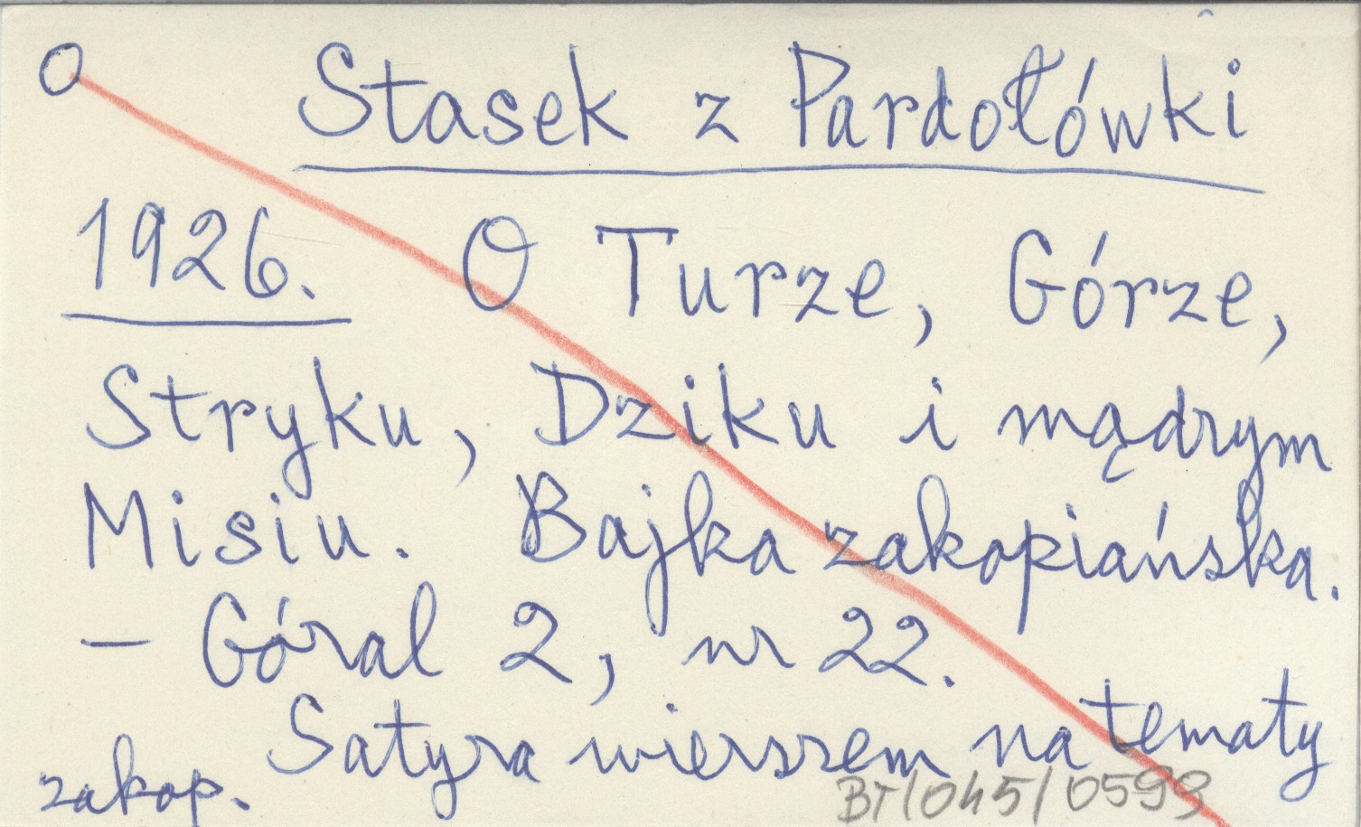 Stasek z Pardołówki 1926 O Turze, Górze, Stryku, Dziku i mądrym Misiu. Bajka zakopiańska.