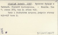 STASIAK Ludwik 1907 Rycerze śpiący w Tatrach. Powieść historyczna.