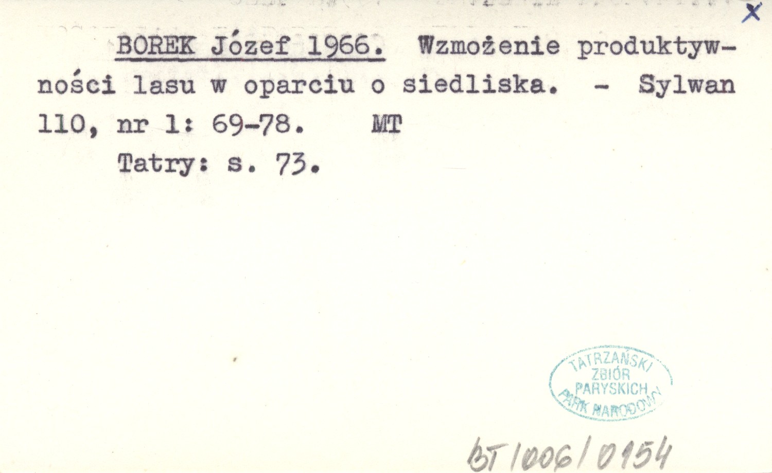 BOREK Józef 1966 Wzmożenie produktywności lasu w oparciu o siedliska.