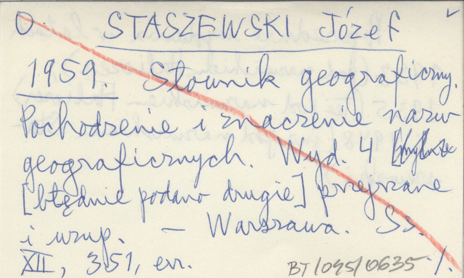 STASZEWSKI Józef 1959 Słownik geograficzny. Pochodzenie i znaczenie nazw geograficznych.