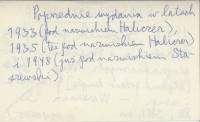 WYD: 4 zmien. i uzup. Warszawa , XII, 351 s., err. Poprzednie wydania w latach 1933 (pod nazwiskiem Haliczer), 1935 (też pod nazwiskiem Haliczer) i 1948 (już pod nazwiskiem Staszewski).