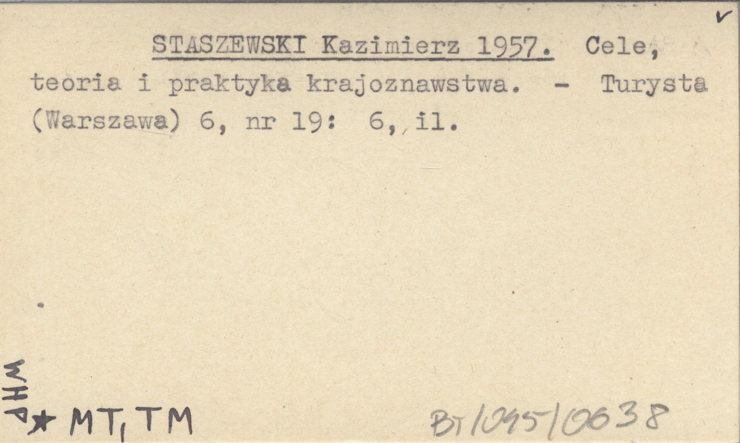 STASZEWSKI Kazimierz 1957 Cele, teoria i praktyka krajoznawstwa.