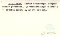 A. Z. 1893 Ksiądz Stolarczyk. (Wspomnienie pośmiertne.) (Z warszawskiego "Słowa".)
