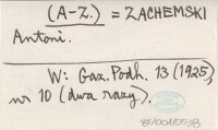 (A-Z.) ZACHEMSKI Antoni Gazeta Podhalańska 13 (1925), nr 10 (dwa razy).