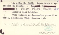A. z Kr. M. MALLETSKA Adela z Krasińskich 1862 Wspomnienie z wycieczki do Pesztu.