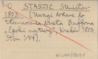 STASZIC Stanisław 1803 [Uwagi dodane do tłumaczenia dzieła Buffona "Epoki natury".]