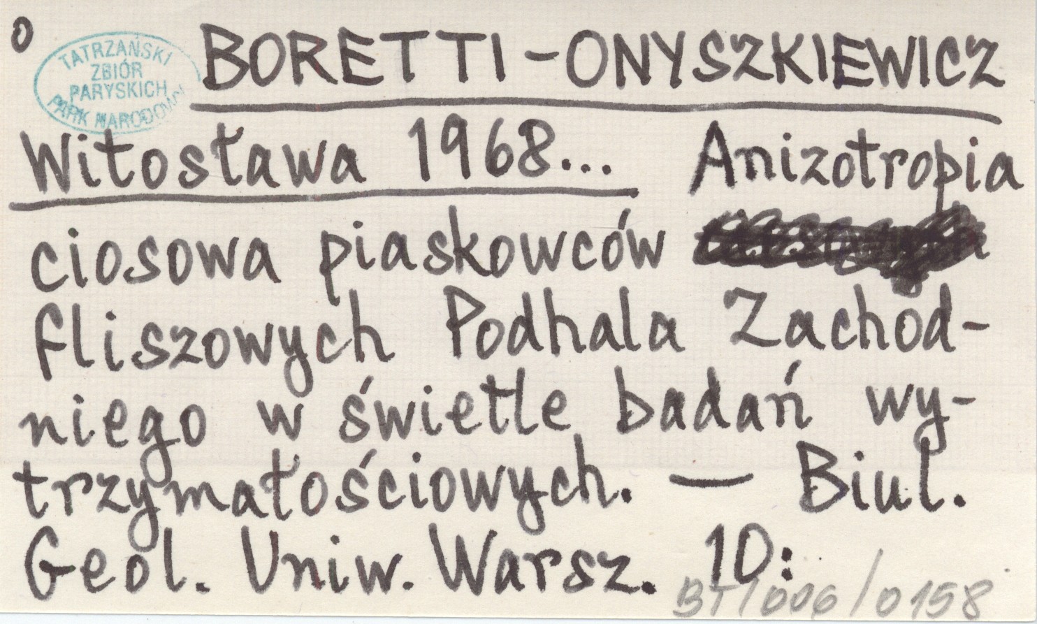 BORETTI-ONYSZKIEWICZ Witosława 1968... Anizotropia ciosowa piaskowców fliszowych Podhala Zachodniego w świetle badań wytrzymałościowych.