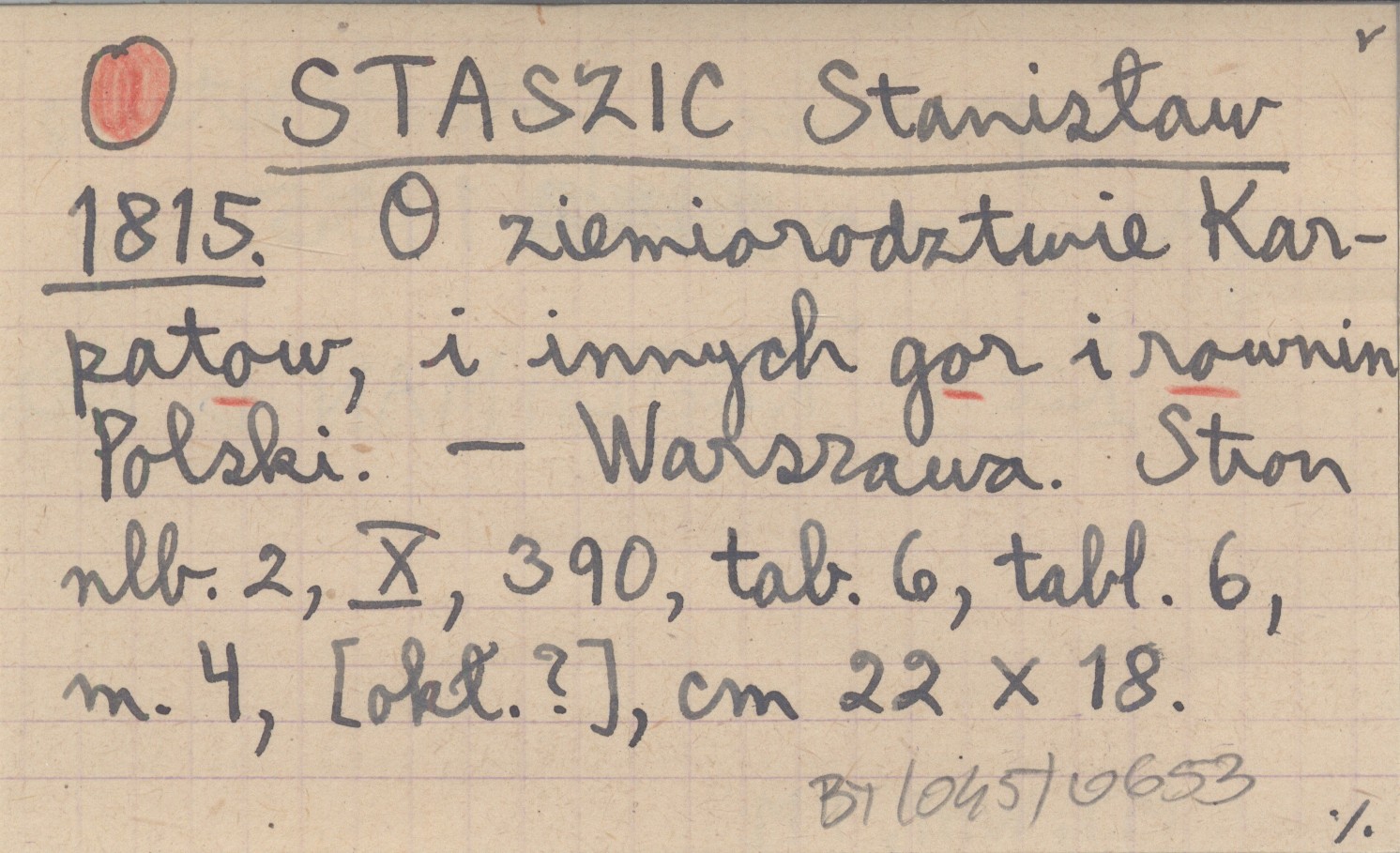 STASZIC Stanisław 1815 O ziemiorodztwie Karaptow, i innych gor i rownin Polski.