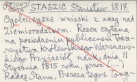 STASZIC Stanisław 1817 Ogolnieysze wnioski z uwag nad Ziemiorodztwem. Rzecz czytana na posiedzeniu publicznem Towarzystwa Królewskiego Warszawskiego Przyiaciół nauk, dnia 11 Stycznia 1815 roku, przez [...] Radcę Stanu, Prezesa tegoż Towarzystwa.