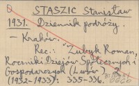 STASZIC Stanisław 1931 Dziennik podróży.