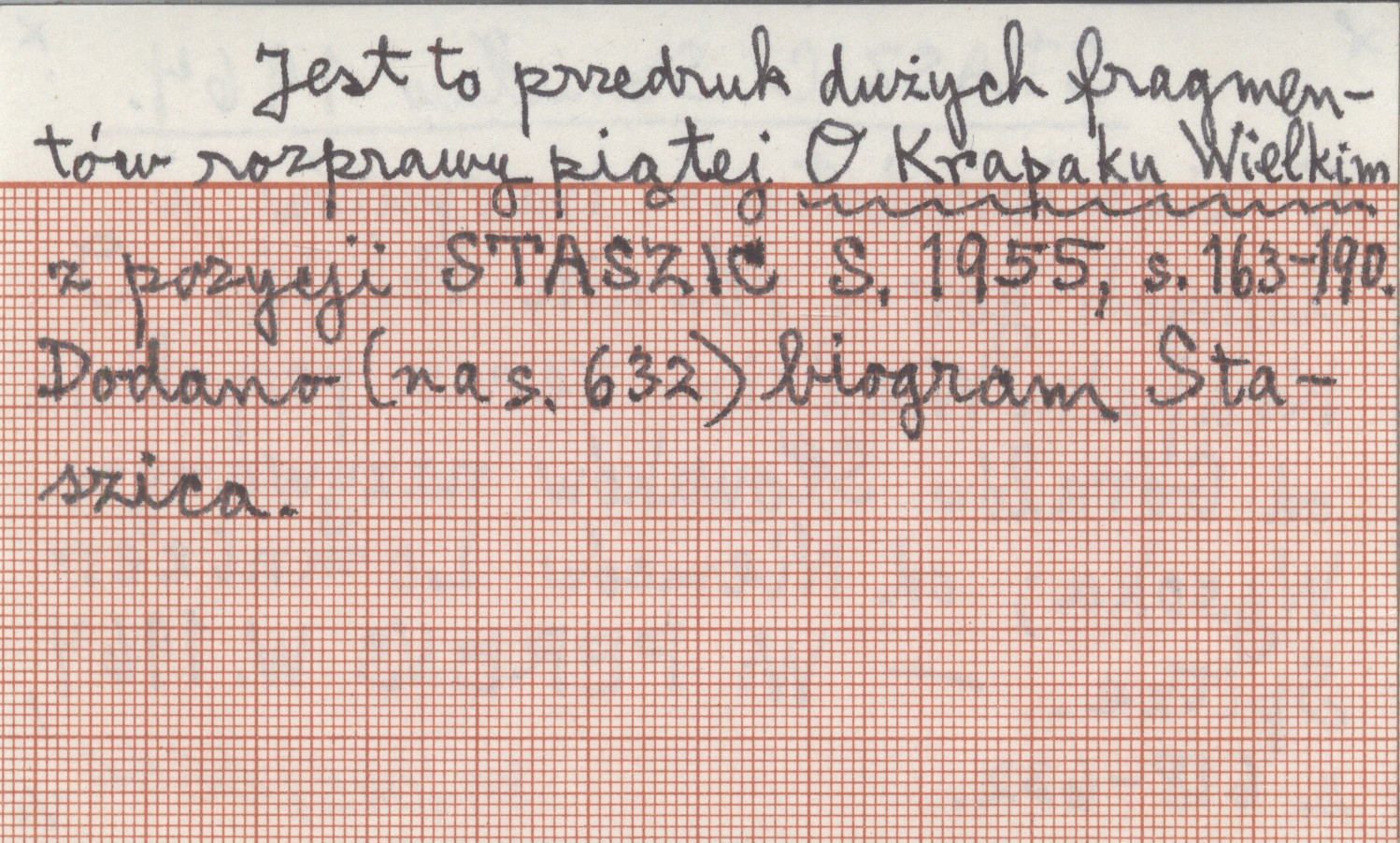 FERENS W. 1964 , S. 618-632. Jest to przedruk dużych fragmentów rozprawy piątej O Krapaku Wielkim z pozycji STASZIC S. 1955: 163-190. Dodano (na s. 632) biogram Staszica.