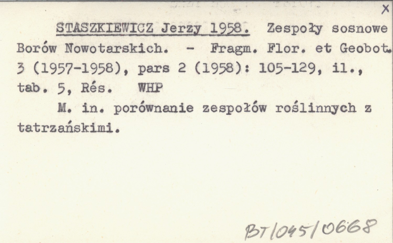 STASZKIEWICZ Jerzy 1958 Zespoły sosnowe Borów Nowotarskich.