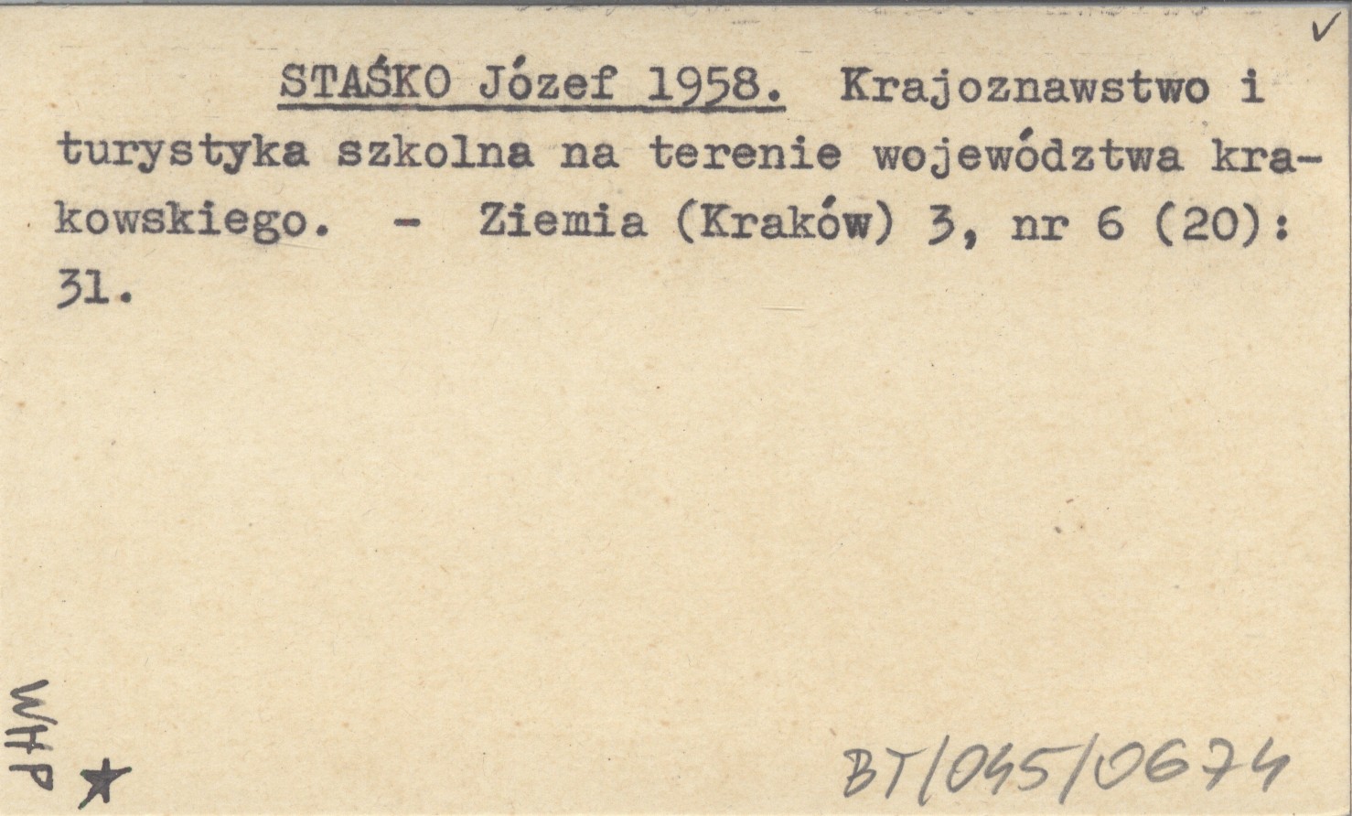 STAŚKO Józef 1958 Krajoznawstwo i turystyka szkolna na terenie województwa krakowskiego.