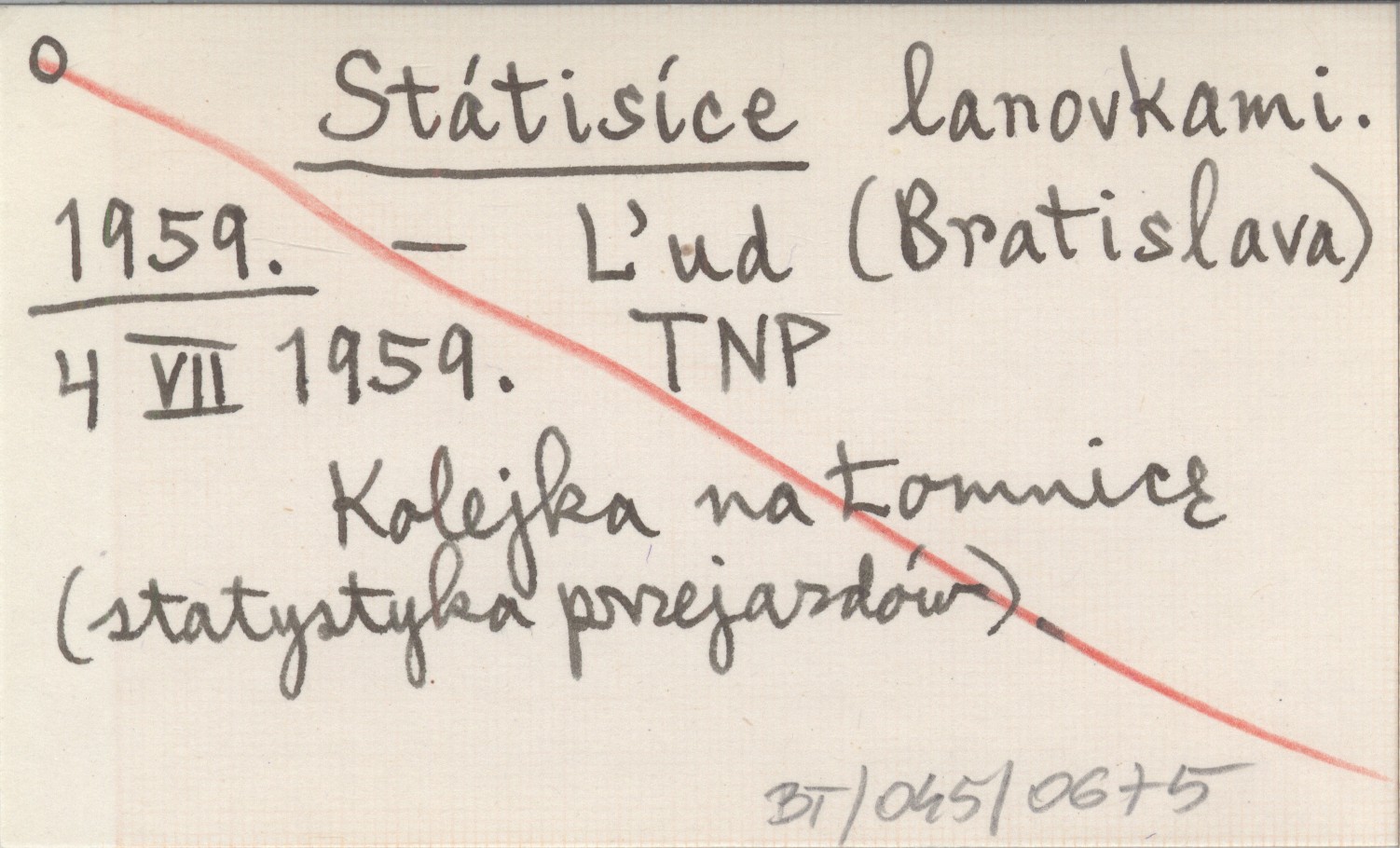 Ľud (Bratislava) , 4 VII 1959. Kolejka na Łomnicę (statystyka przejazdów).
