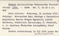 Statut galicyjskiego Towarzystwa tatrzańskiego. 1874