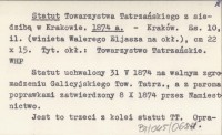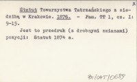 Statut Towarzystwa Tatrzańskiego z siedzibą w Krakowie. 1874 a