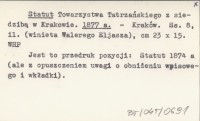 Statut Towarzystwa Tatrzańskiego z siedzibą w Krakowie. 1876