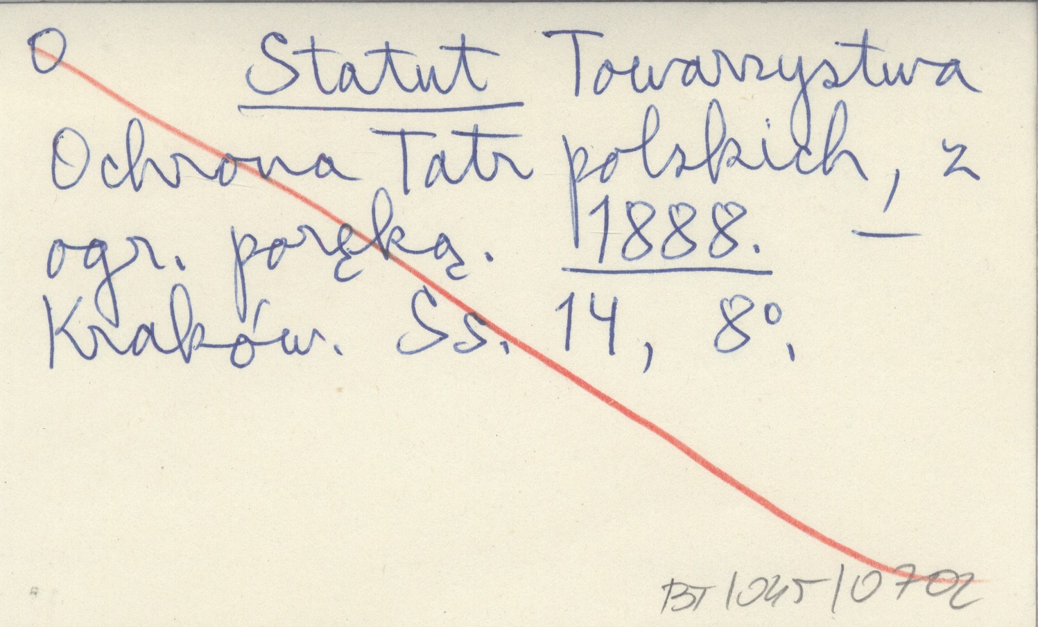 Statut Towarzystwa Ochrona Tatr polskich, z ogr. poręką. 1888