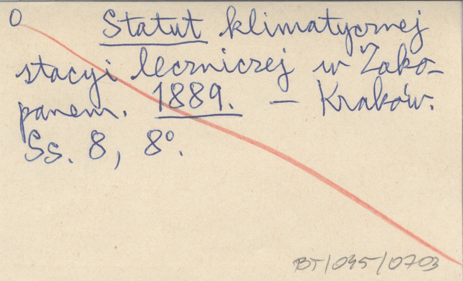 Statut klimatycznej stacyi leczniczej w Zakopanem. 1889