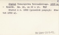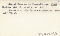 Statut Towarzystwa Tatrzańskiego. 1900