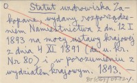 Statut uzdrowiska Zakopane, wydany rozporządzeniem Namiestnictwa z dn. 12 I 1893 na mocy ustawy krajowej z dnia 4 XI 1891 (dz. u. kr. Nr 80) i w porozumieniu z wydziałem krajowym. 1893