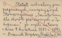 Statut uchwalony przez podpisanych, zawiązujących Stowarzyszenie "Sanatorium dla chorób piersiowych w Zakopanem" po myśli ustawy z dnia 9 kwietnia 1873 r. 1893