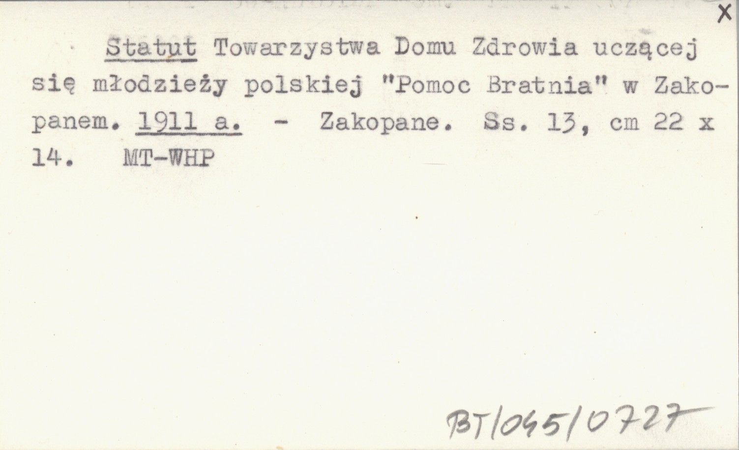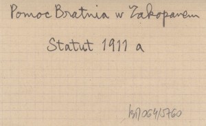 Statut Towarzystwa Domu Zdrowia uczącej się młodzieży polskiej "Pomoc Bratnia" w Zakopanem. 1911 a